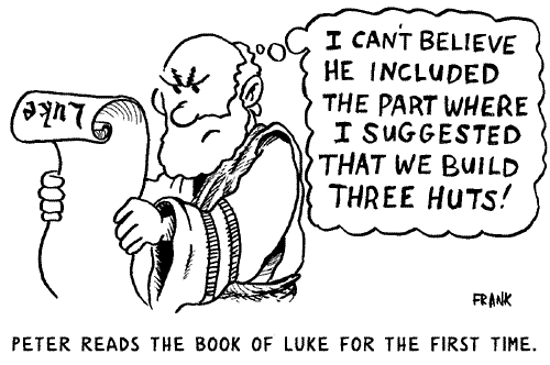 Published at 500 × 332 in Saturday Morning Funnies: Peter’s Initial reaction to the Gospel of Luke