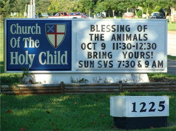I drove by a church in my town today and saw this sign. After rear-ending the guy in front of me, exchanging insurance information, and calling the tow truck, I had time to take the photo. I tried and tried to come up with a caption for this one that was funny. Here are a few examples: “Pastor Steve Boldly Implements His New Church Growth Plan” or “Church Animal Outreach Produces Unwanted Offerings” or “Could This Be the Next Great Awakening?” In the end, I couldn’t come up with anything I liked.