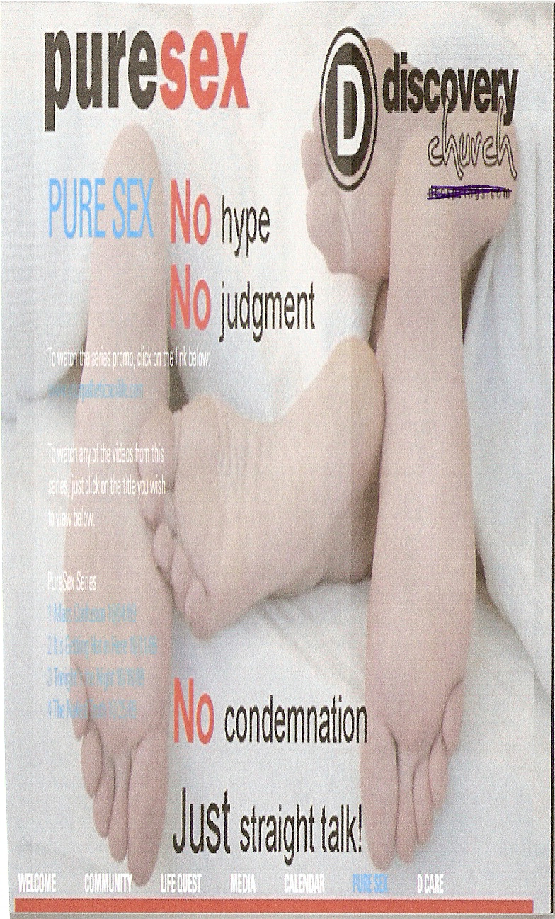 A local church in my city recently ran this “Pure Sex” advertising campaign to attract the non-churched to come to their services. They drove around the city with this banner on a trailer. First, I thought it was an advertisement for a porn shop. I was stopped dead in my tracks when I realized it was an advertisement to Read the rest of this entry